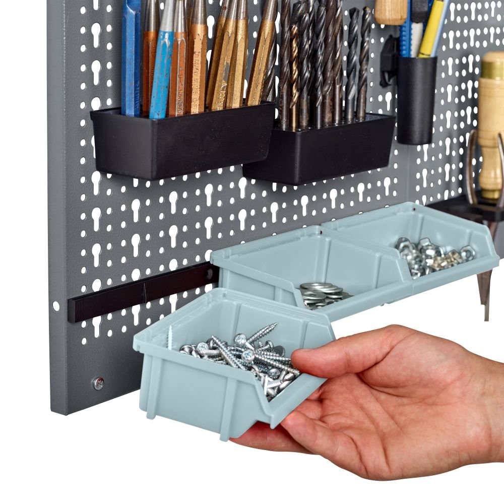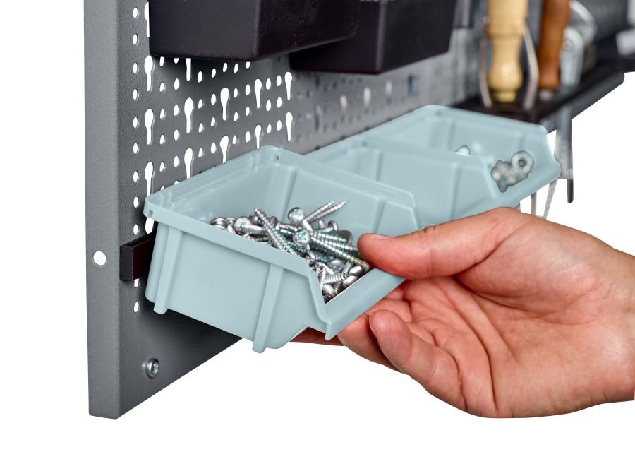 Universalus adapteris skirtas dėžutėms kabinti ant perforuotos sienelės arba pakabinamų spintelių.